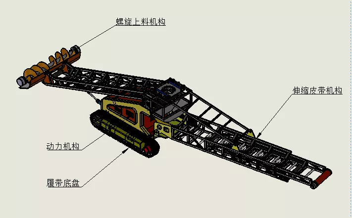 主要包括獨立開發(fā)的履帶底盤,斗輪式或者螺旋式的上料機構,可伸縮的輸送皮帶,頂級品牌的的發(fā)動機及控制系統(tǒng)。