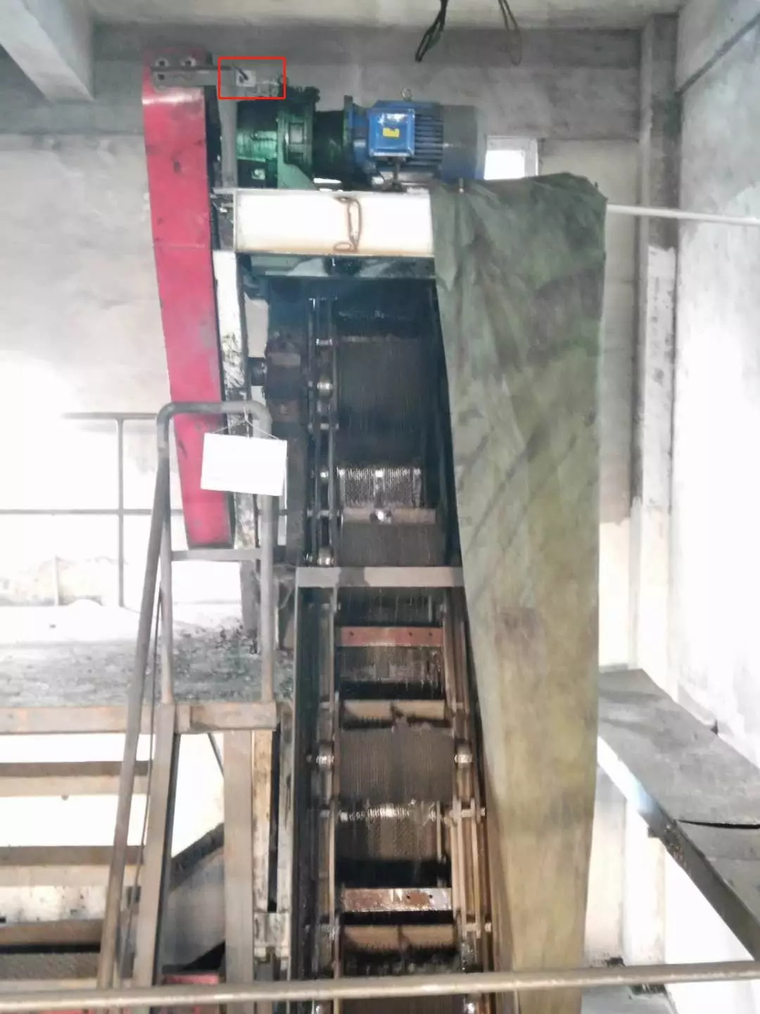 現(xiàn)場(chǎng)斗提機(jī)處在一個(gè)比較高的地方,點(diǎn)檢工作其實(shí)是比較危險(xiǎn),且麻煩的工作,不過(guò)好在安爾法的傳感器安裝上了。