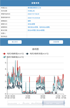 7月5日,安爾法PdM系統(tǒng)監(jiān)測(cè)到了394離心機(jī)的重大異常,并立即向選煤廠相關(guān)負(fù)責(zé)部門推送了2次預(yù)警(1次電機(jī)預(yù)警、1次機(jī)體預(yù)警)和1次電機(jī)報(bào)警信息,選煤廠工作人員收到警報(bào)后,立即到達(dá)了異常設(shè)備現(xiàn)場(chǎng)并與安爾法的專家進(jìn)行溝通,在第一時(shí)間更換了異常設(shè)備394離心機(jī)的相關(guān)零部件。