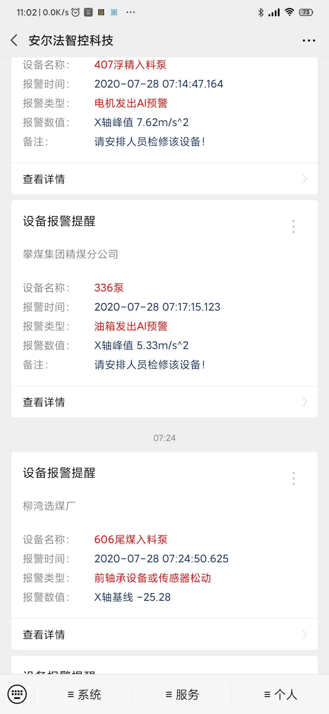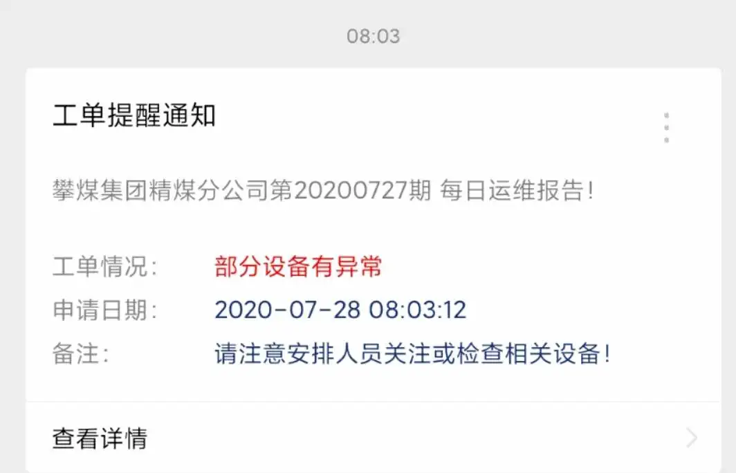 在此情況下,PdM系統(tǒng)的后臺(tái)程序在第一時(shí)間通過微信公眾號(hào)向安爾法的技術(shù)團(tuán)隊(duì)以及攀煤選煤廠的工作人員多次推送了設(shè)備報(bào)警信息。