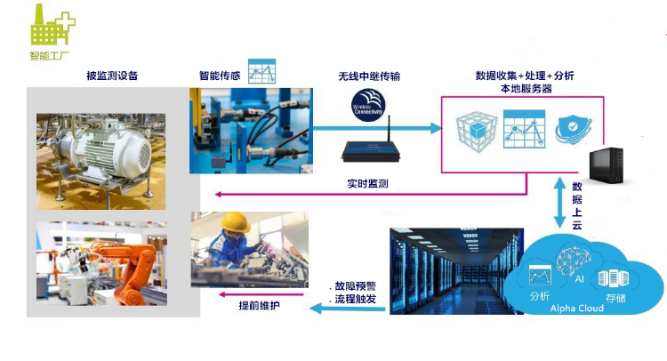安爾法的PHM(故障預(yù)測(cè)與健康管理)系統(tǒng)主要針對(duì)工業(yè)領(lǐng)域,大致分為數(shù)據(jù)采集、信息歸納處理、狀態(tài)監(jiān)測(cè)、健康評(píng)估、故障預(yù)測(cè)決策、保障決策六個(gè)部分。