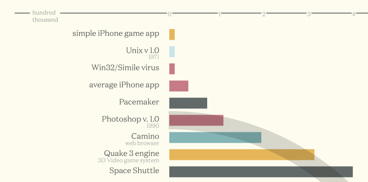 Codebases是一家美國的軟件公司,它統(tǒng)計(jì)過歷史上知名的軟件/系統(tǒng)的代碼量,也就是代碼行數(shù)量,部分?jǐn)?shù)據(jù)如下圖: