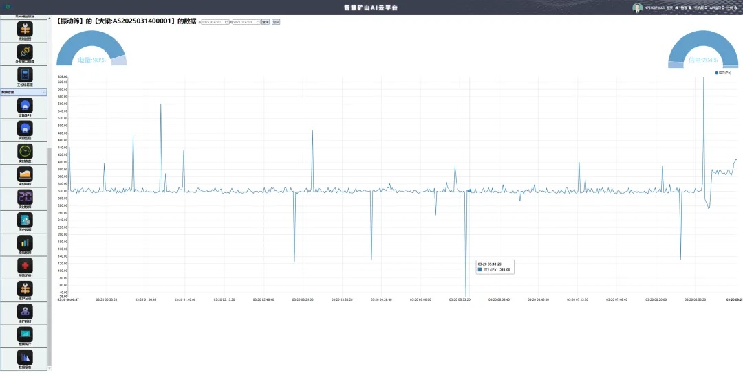 預(yù)警和報警功能:通過設(shè)備傳感器反饋的報警信息,來定位設(shè)備具體傳感器報警的信息, 并將該部位模型變色顯示,讓用戶非常清楚設(shè)備具體的預(yù)警或報警位置以及對應(yīng)的原因信 息展示,方便用戶針對性管理解決,也可打開監(jiān)測曲線展示